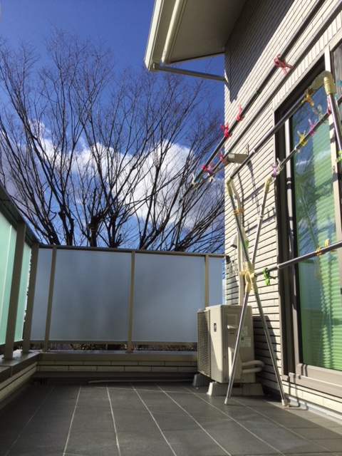 干してみて思ったのは、意外にこの手すりの幅が広いな!ということ。お布団はさみが幅ぎりぎりになりました。それどころか、強風のときにお布団はさみがあっという間に弾け飛び、お布団が吹っ飛んでいきました…!Σ( ̄ロ ̄lll)
